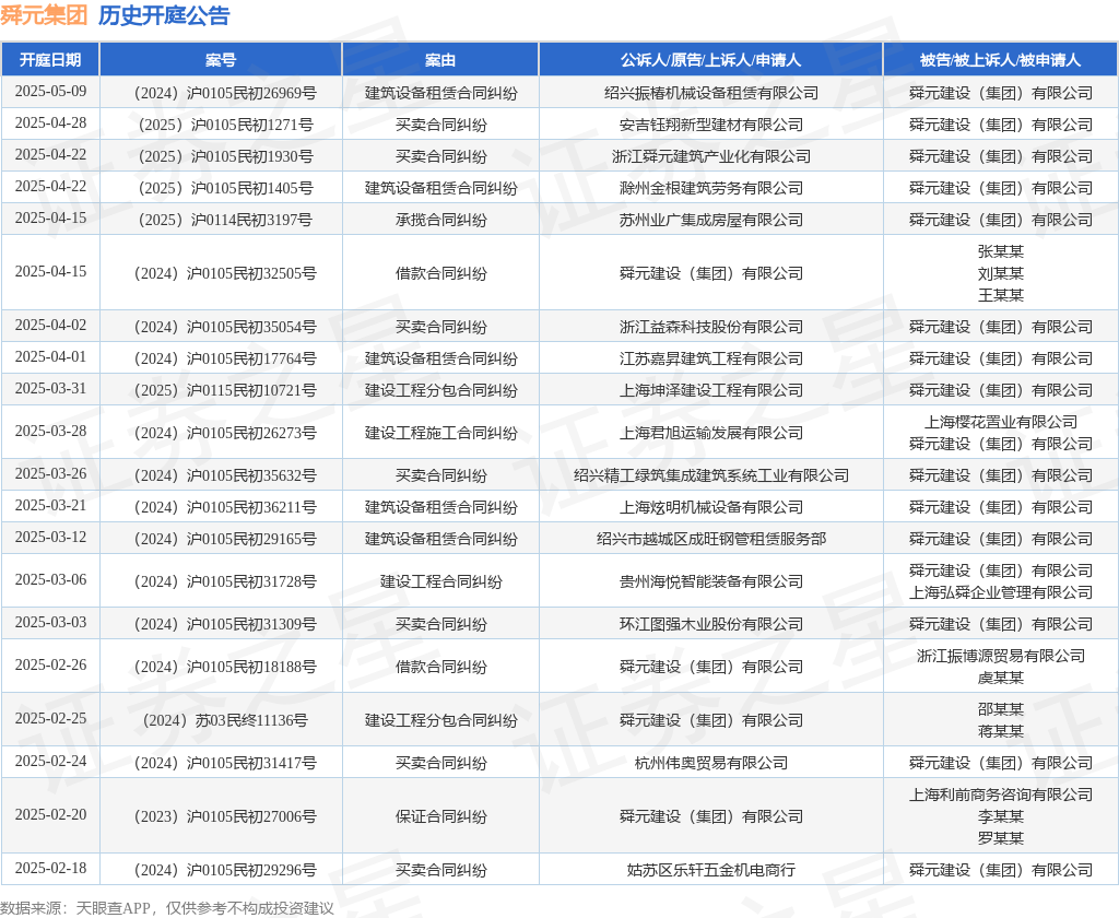 本站消息,根据天眼查APP显示,近日公布了一则舜元建设(集团)有限公司作为原告/上诉人的开庭公告,详细内容如下: